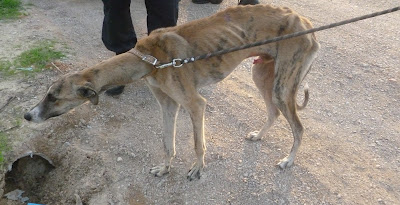 Depois de ser usado em corridas e caça e talvez por não servir, pois até de gatos gosta, foi abandonado à sua mercê…foi apanhado, adoptado por alguém que não era responsável, que depois em vez de o devolver o deu a alguém cuja definição não existe e que o torturou e deixou à fome para morrer…conseguiu fugir…e foi resgatado neste estado…procuro alguém com o coração de ouro que o adopte para sempre, que goste dele e que se dedique a dar-lhe uma vida condigna, apesar do seu estado é muito meigo e carinhoso, encosta a cabeçinha a pedir festas e carinho, dá beijinhos é um sobrevivente, muito corajoso e nada tímido para quem passou pelo que passou.