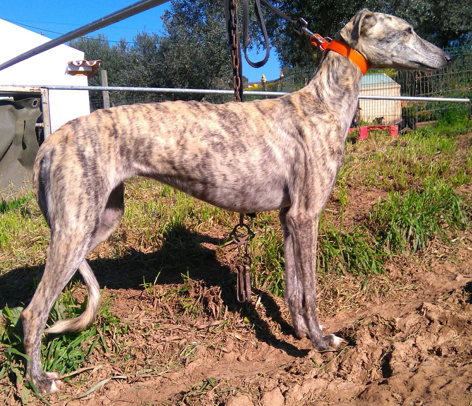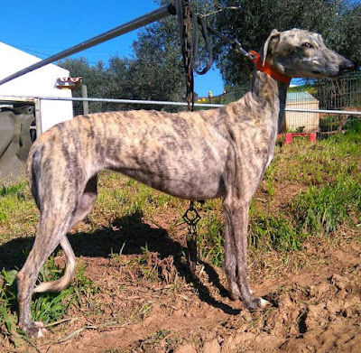 Encontra-se em Estremoz em casa do galgueiro que solicitou ajuda para adoção por não servir para as corridas.