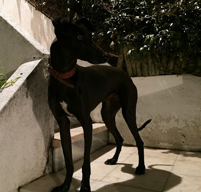 E a whippet Jinga (ex-Lana) linda e simpática já foi adoptada, ficou por Palmela com a sua enorme família, cão, gato e muitos humanos para a mimar.