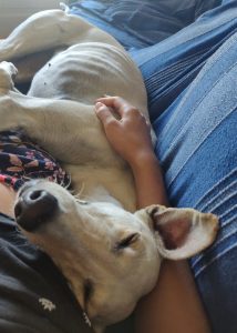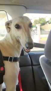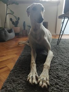 Âmbar é uma galguinha jovem com menos de 2 anos, simplesmente maravilhosa e única, foi descartada das corridas e entregue para adoção.