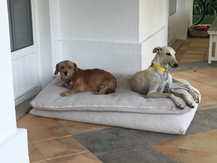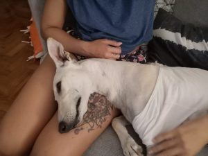 Dá-se muito bem com todas as pessoas e com todos os animais, encontra-se em Lisboa em casa de uma família de acolhimento que infelizmente não pode ficar com ela mas que se ofereceu para cuidar dela até aparecer adotantes com excelentes condições, espaço exterior e interior para dormir e conviver com os donos, com tempo, amor e carinho para lhe dar.