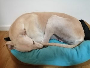 Procuramos bons adotantes para ela, de preferência com outro galgo ou animal muito tranquilo.