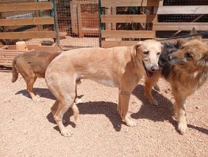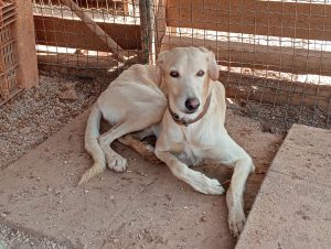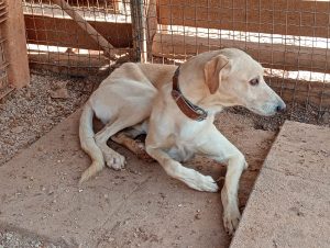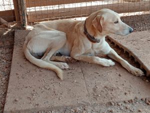 Este é o Alperce, um doce e carinhoso cruzado de Galgo com Labrador, entregue à Associação Bem Estar Animal de Loulé.
