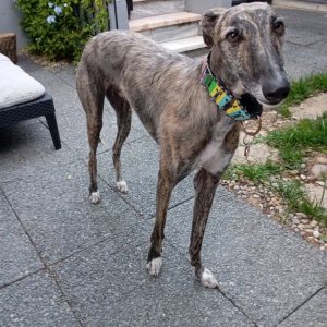 galgo magnífico, de pêlo cerdoso, extremamente meigo, obediente, asseado e simpático, um verdadeiro aristocrata!